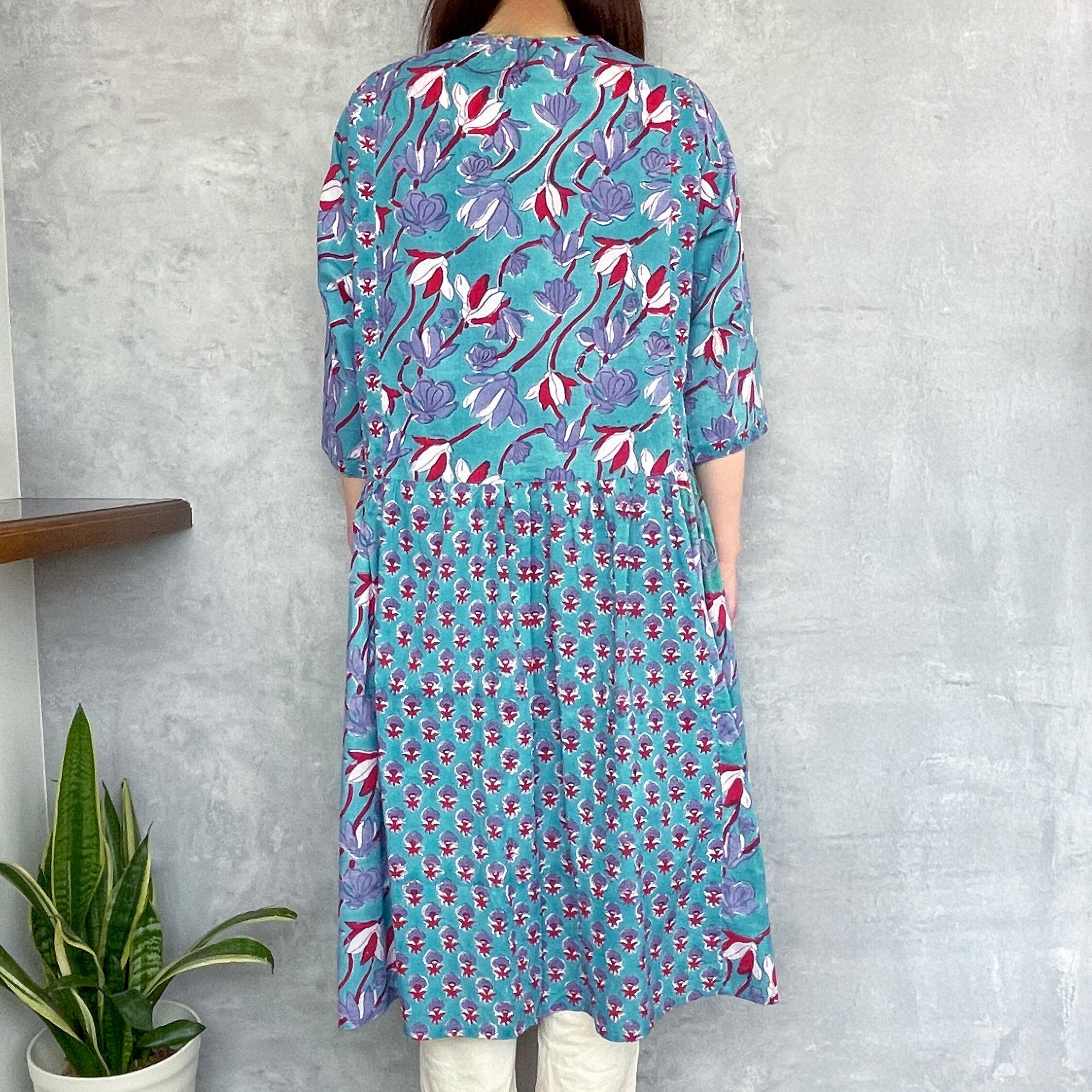 シンプルなデザインに特徴的なコンビネーショプリントをプラスした一着です。