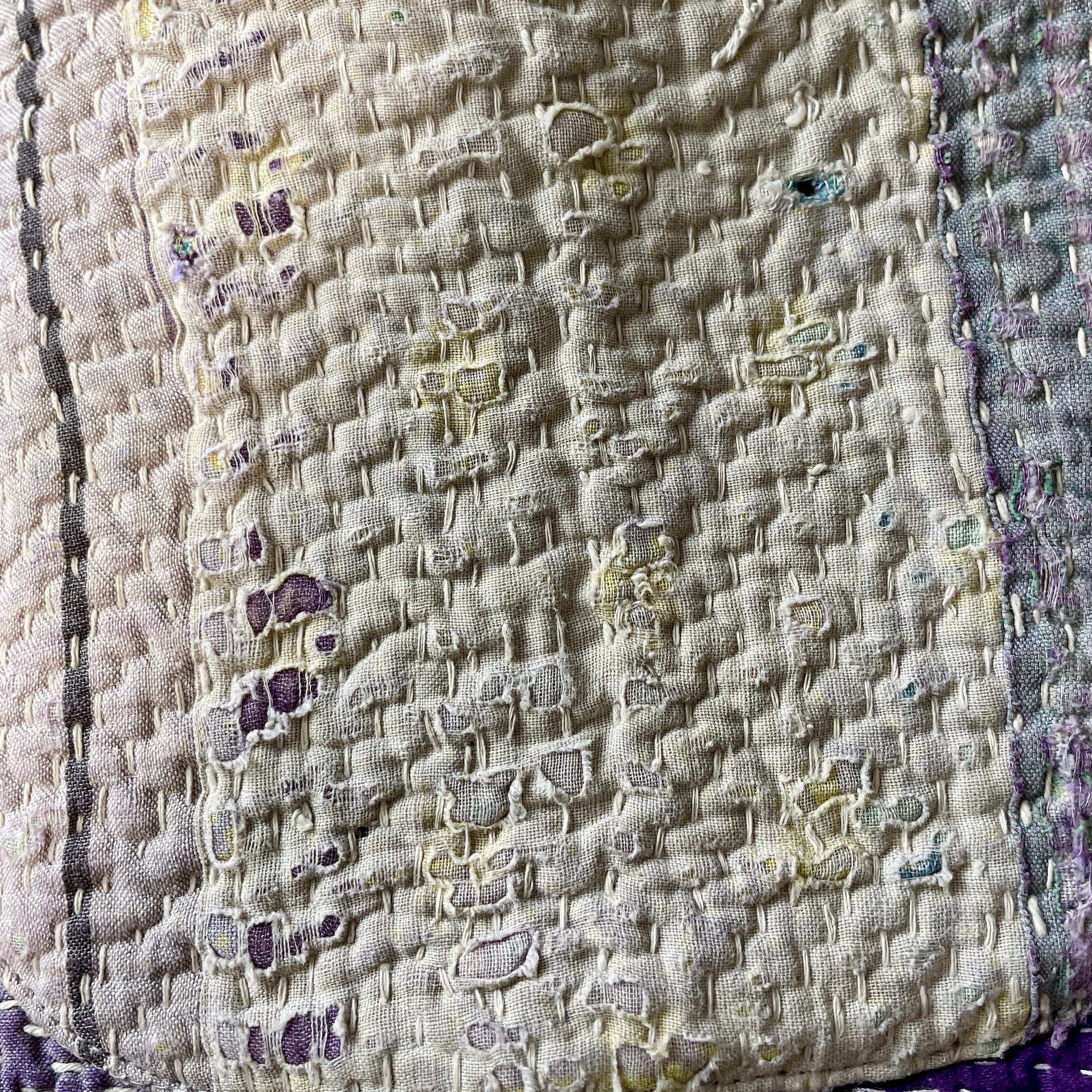 着古した布を補強するため、布を重ねて繋ぎ上から刺し子を施します。