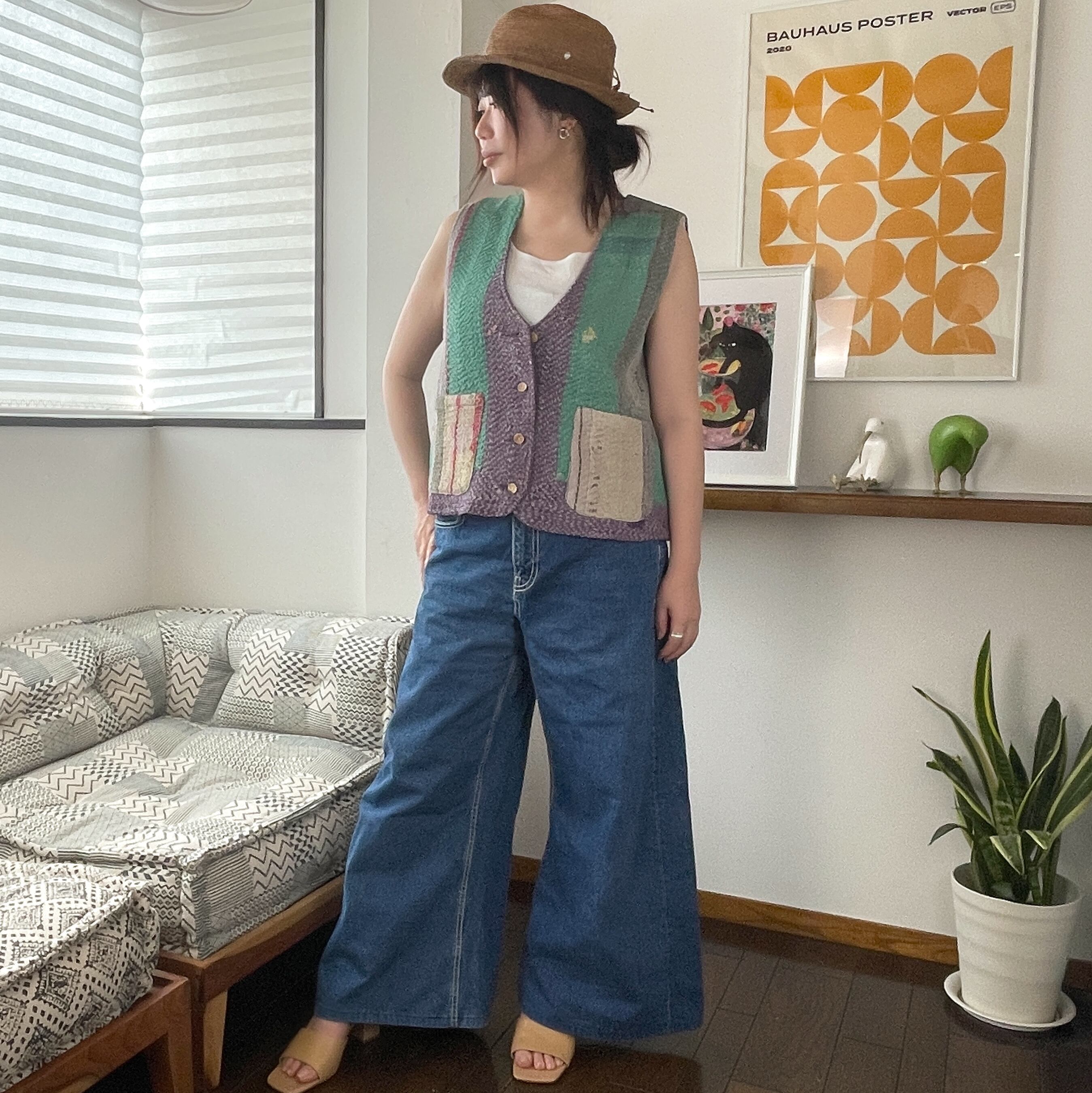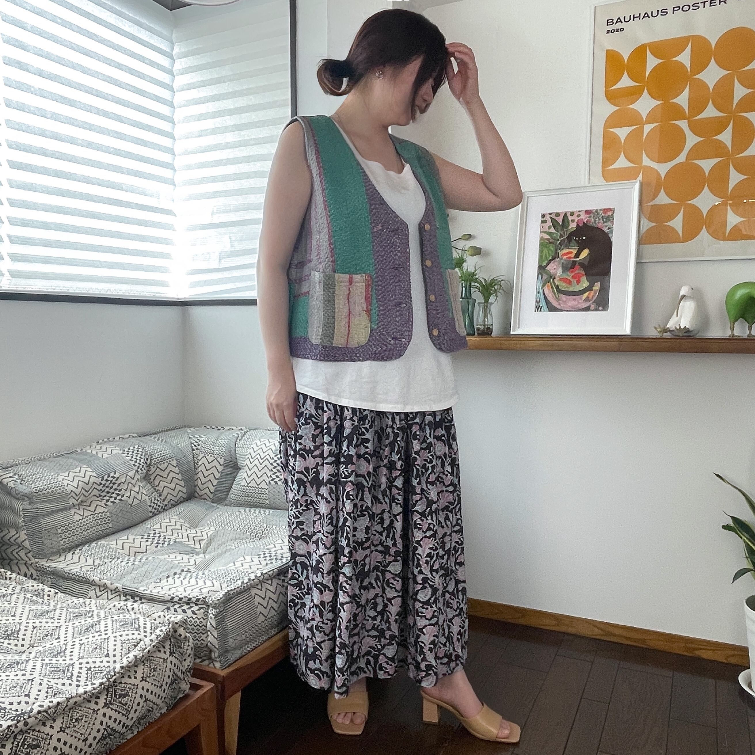 シンプルなトップスやカジュアルなシャツとも相性抜群でプリント物との重ね着を楽しむことができます。