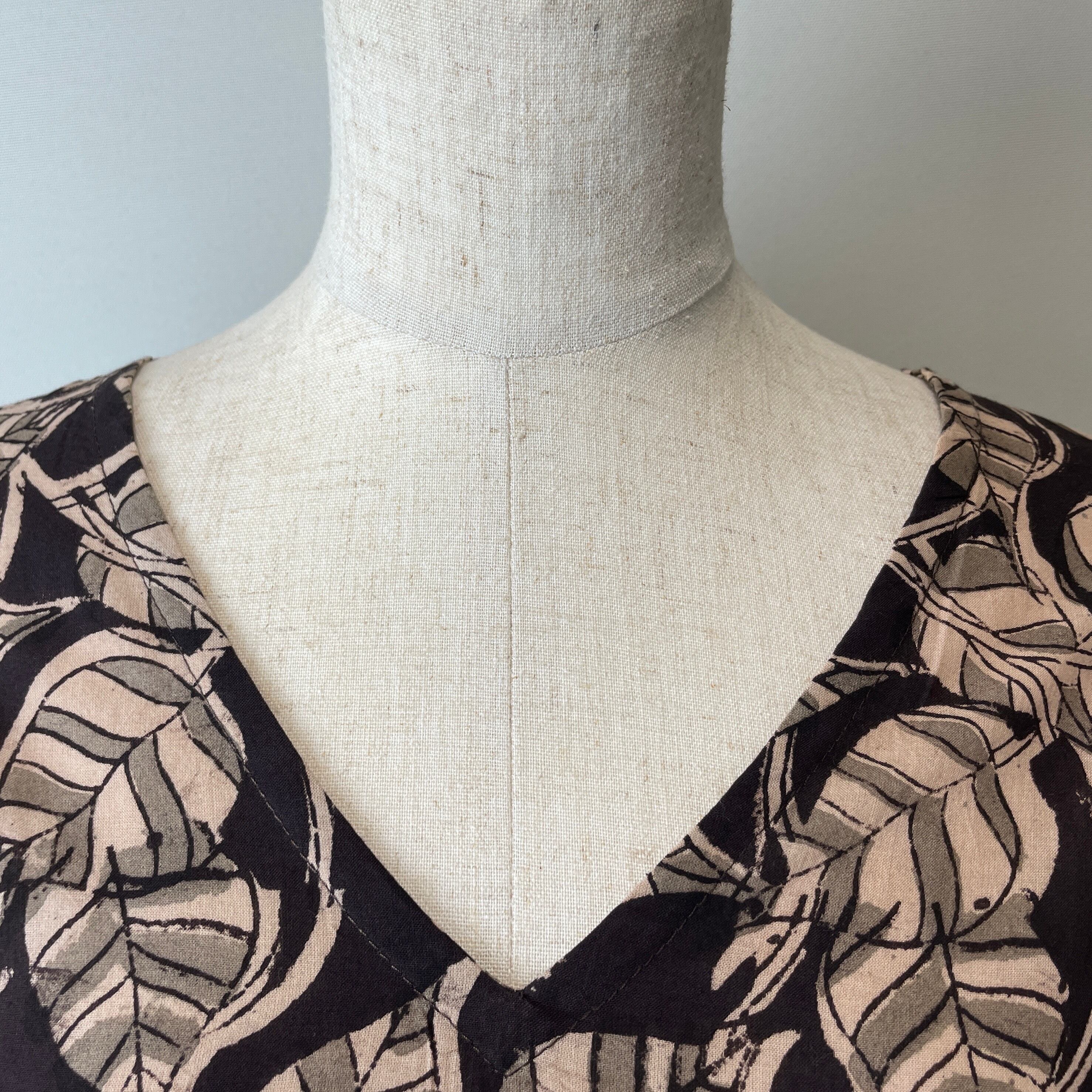 南東部アーンドラ・プラデーシュ州やテランガーナ州などで長きに渡り受け継がれてる伝統染色技法です。花・樹皮・種・天然鉱物などの天然染料のみを用いて、柄のひとつひとつを木版ブロックで手押ししています。そのため、柄のつなぎ目部分などに歪みやズレが生じるのが特徴です。自然の力と人の手による昔ながらの手仕事をお楽しみ下さい。