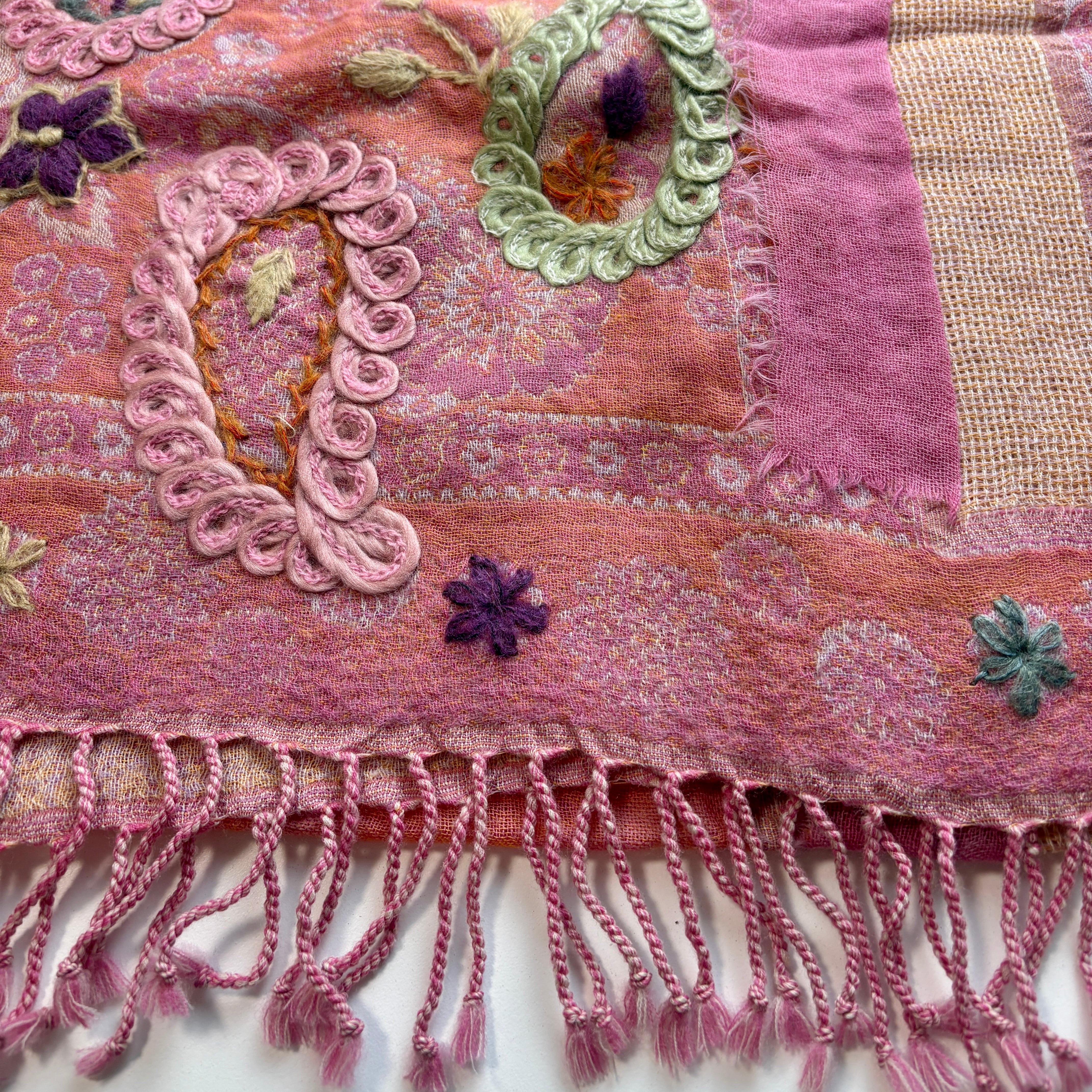 美しい刺繍が施されたこのストールは、あなたのファッションに独自のアクセントを加えます。1点もののため、他にはない特別な一品を手に入れる絶好のチャンスです。
