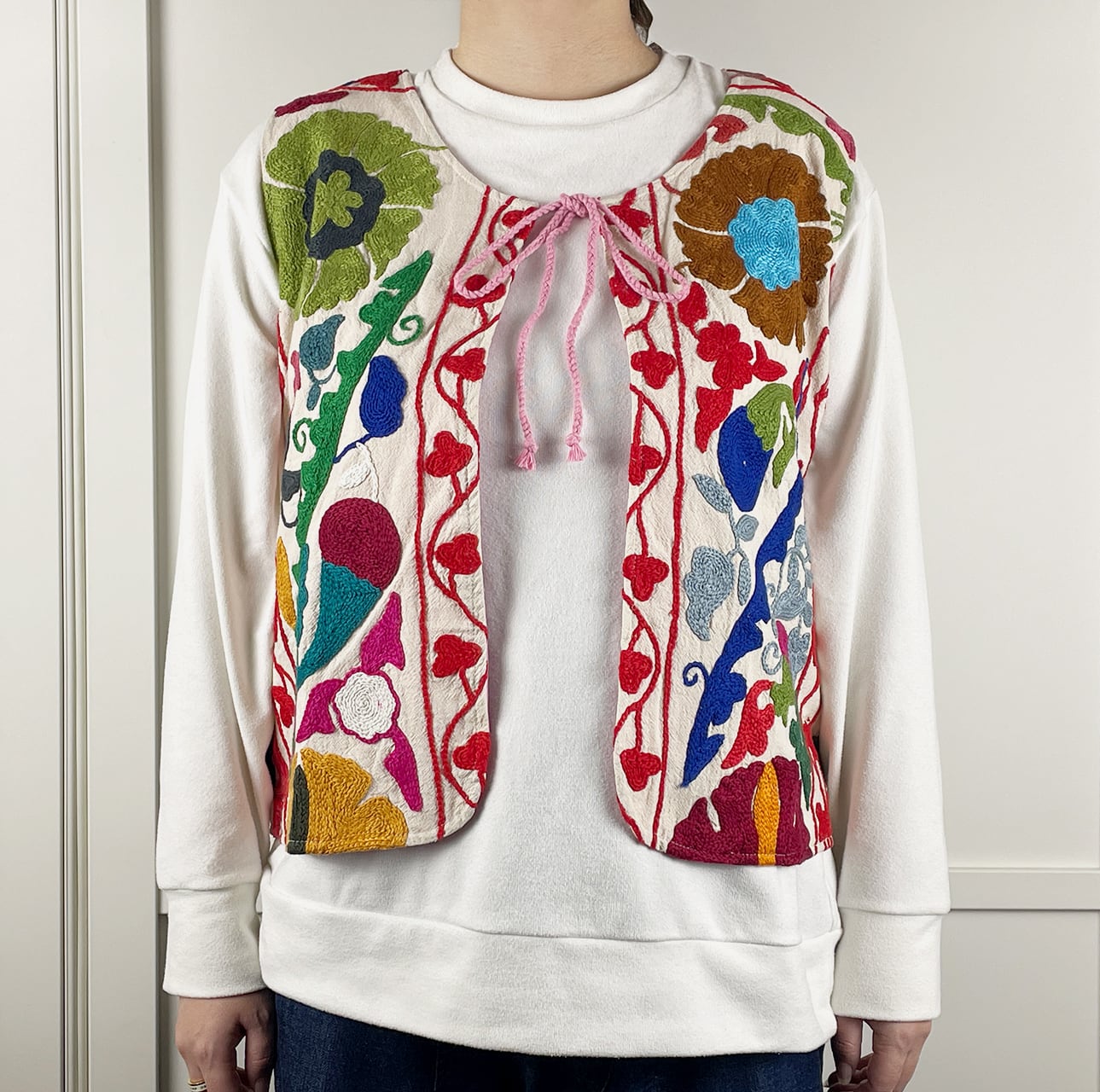 スタイルを引き立てる手刺繍デザインが魅力的なSUZANI手刺繍ベストです!