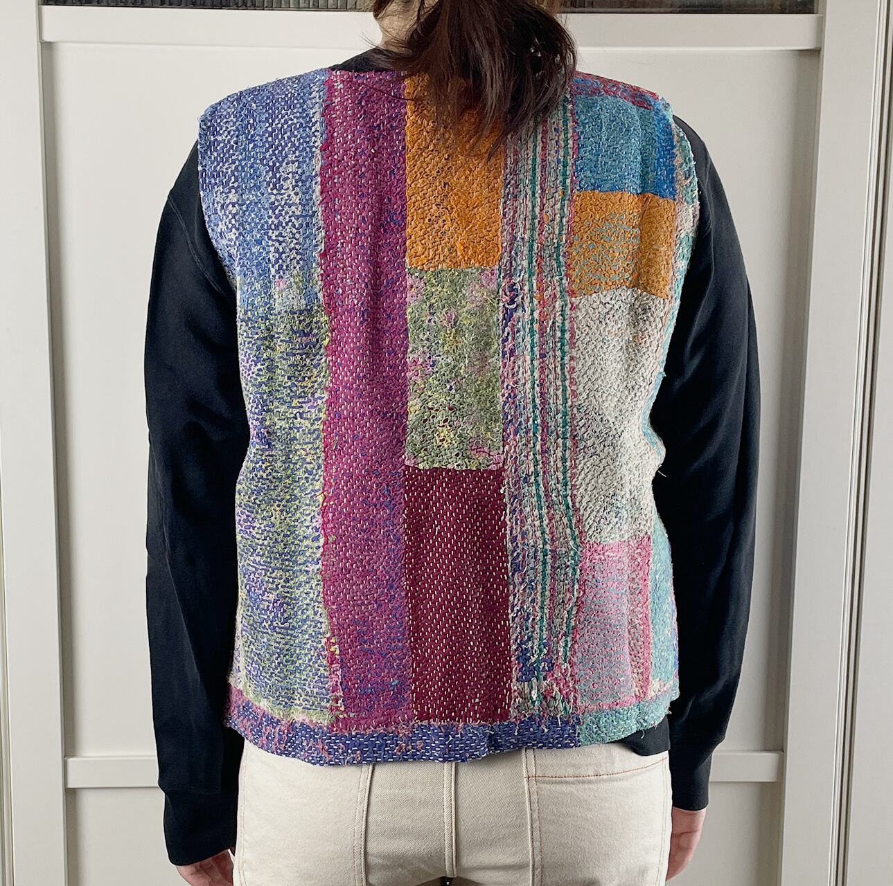 美しい刺し子刺繍が施されたこのベストは、あなたのファッションに独自のアクセントを加えます。1点もののため、他にはない特別な一品を手に入れるチャンスです。