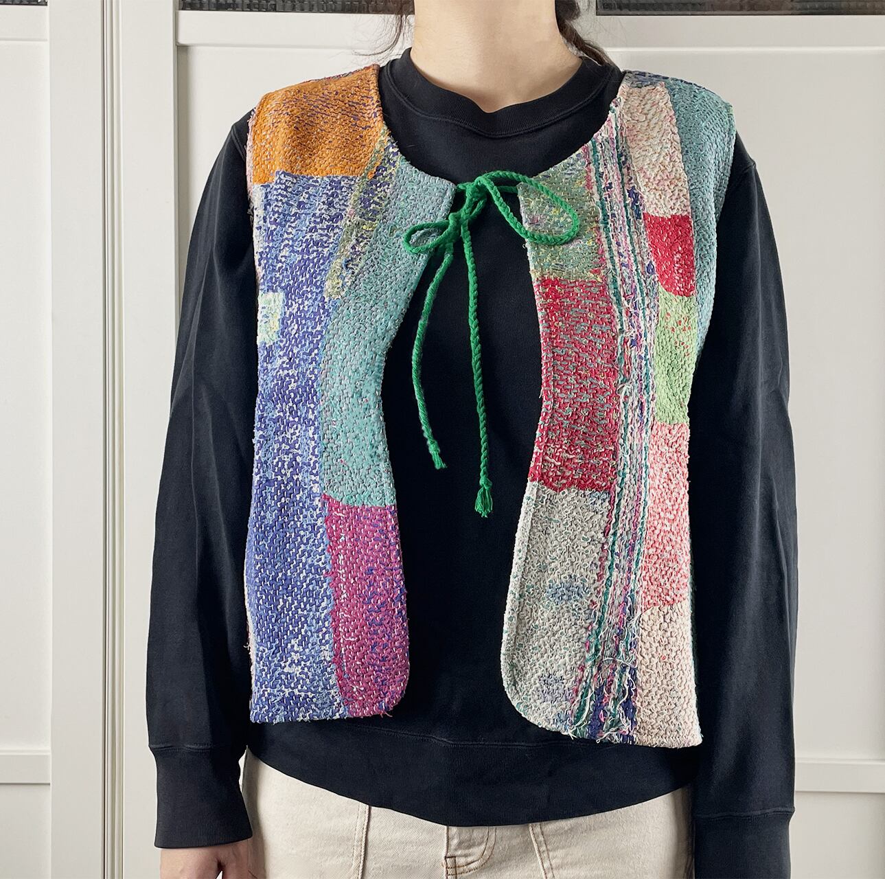 スタイルを引き立てる手刺繍デザインが魅力的なGUDRIさし子刺繍ベストです!