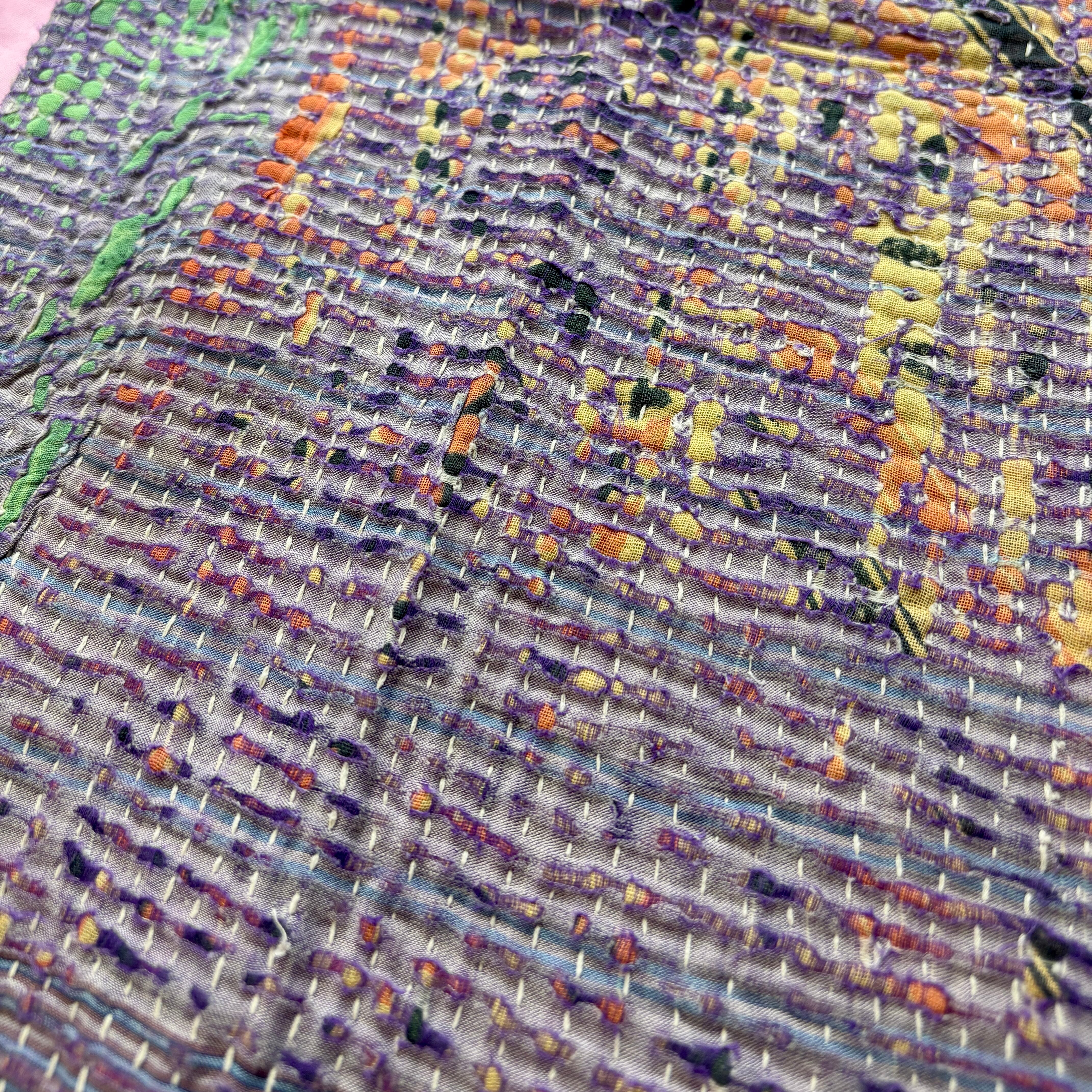 薄く弱くなった布を二枚に重ね、刺繍で補強することで布を丈夫にし再利用していたのが起源です。