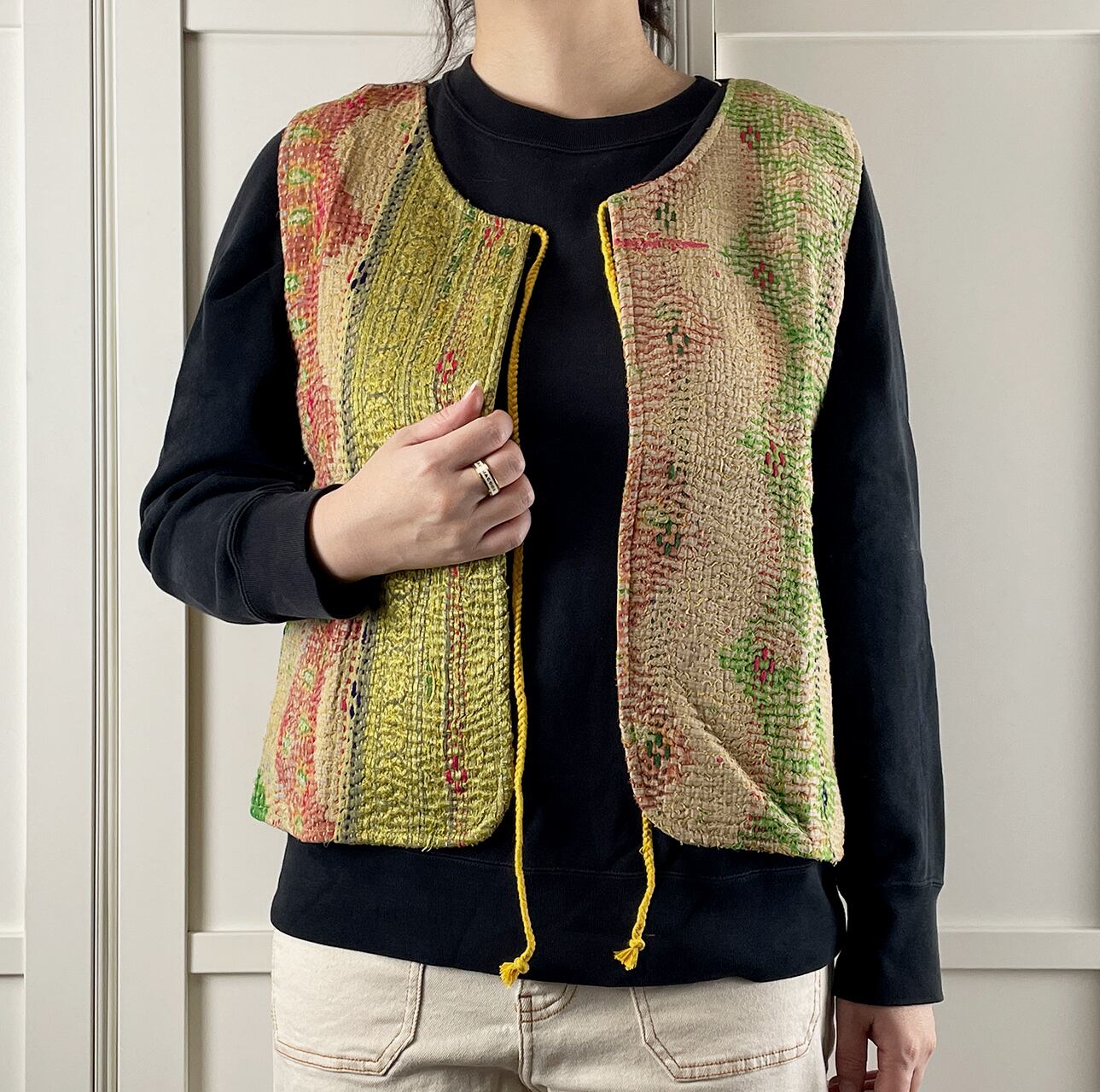 スタイルを引き立てる手刺繍デザインが魅力的なGUDRIさし子刺繍ベストです!
