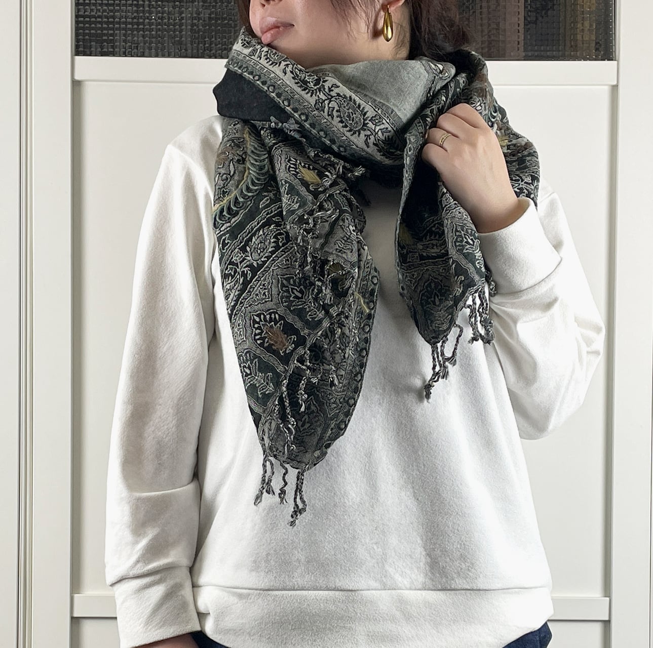 スタイルを引き立てる手刺繍デザインが魅力的なボイル(圧縮)ストールです!