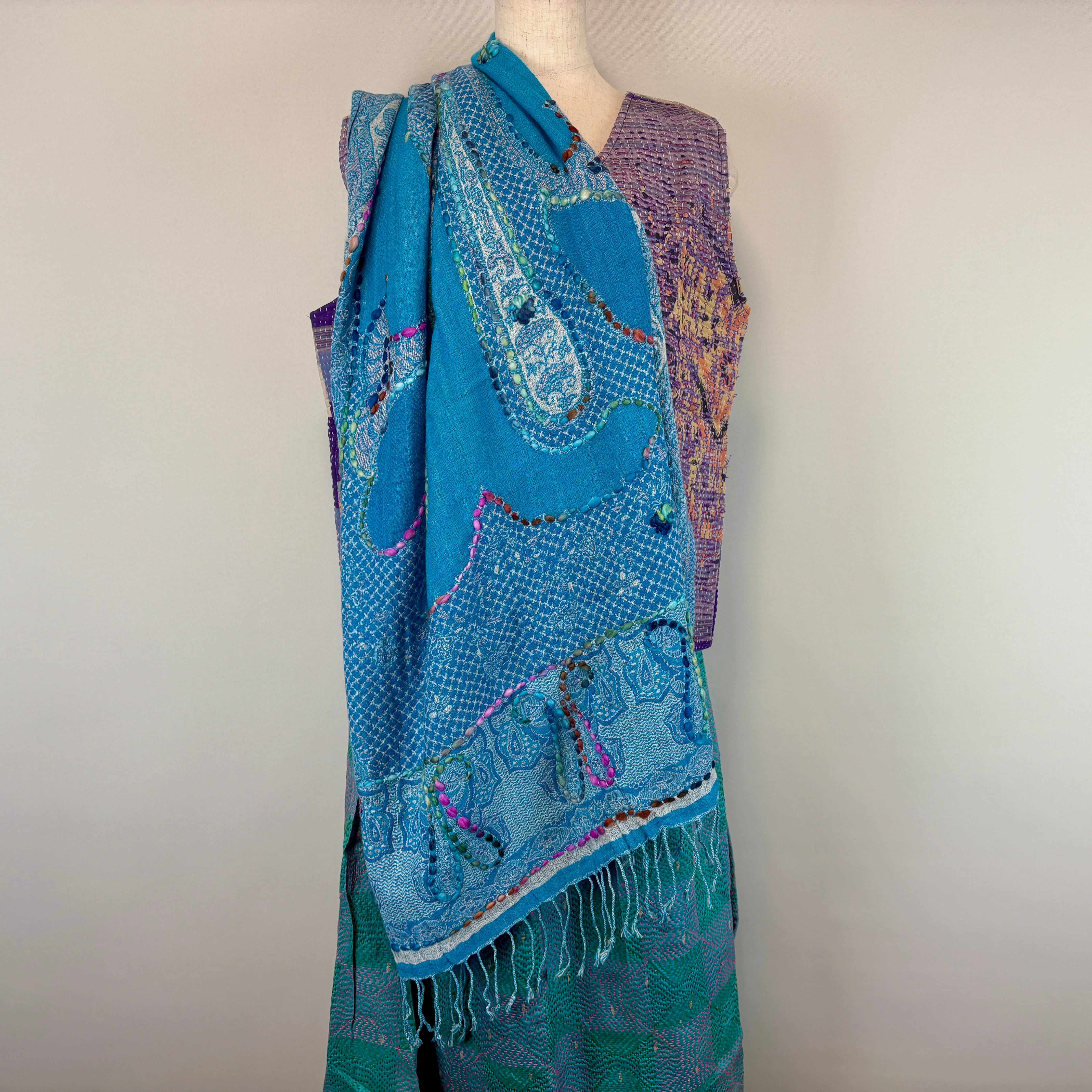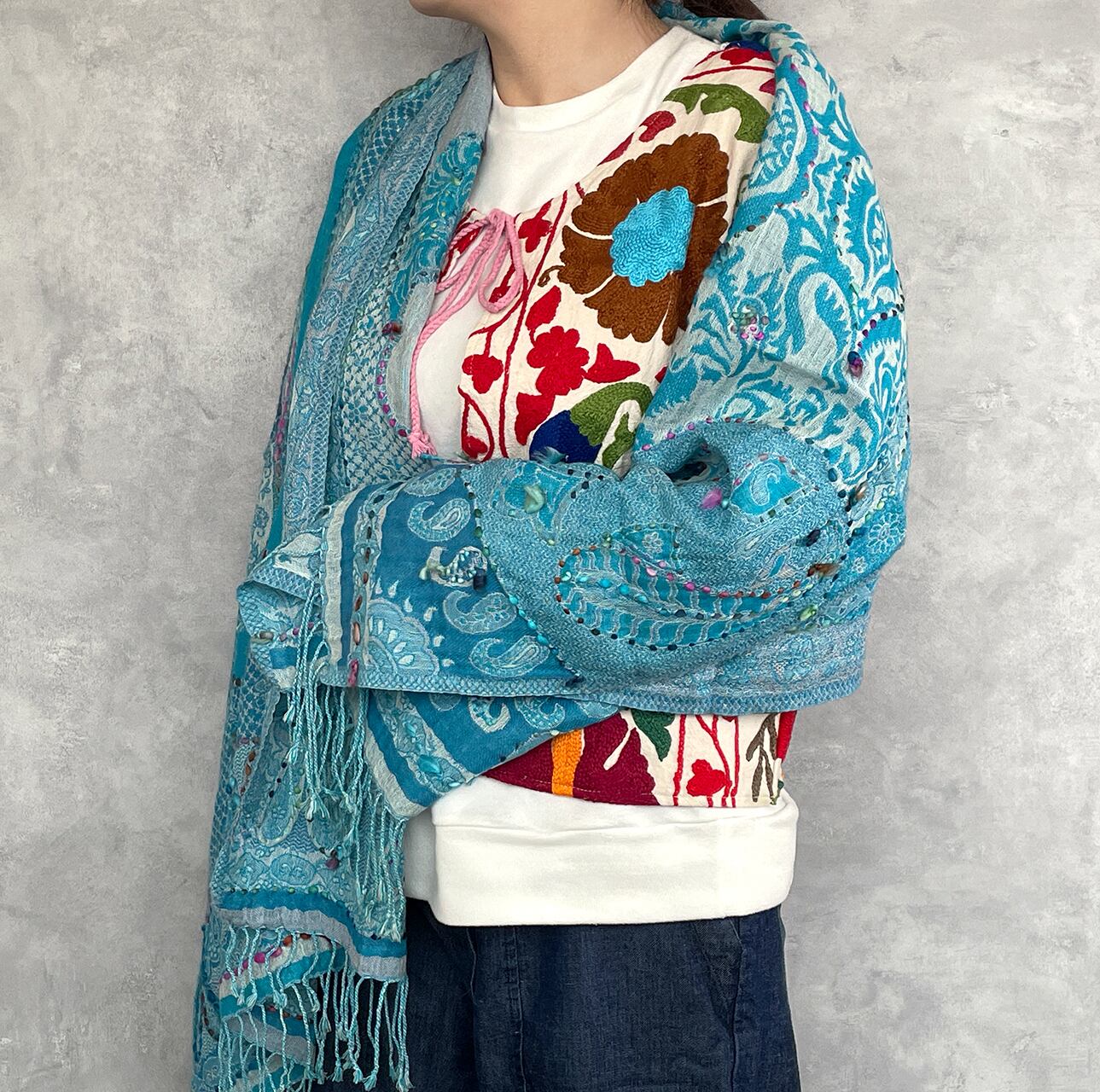 美しい刺繍が施されたこのストールは、あなたのファッションに独自のアクセントを加えます。1点もののため、他にはない特別な一品を手に入れる絶好のチャンスです。