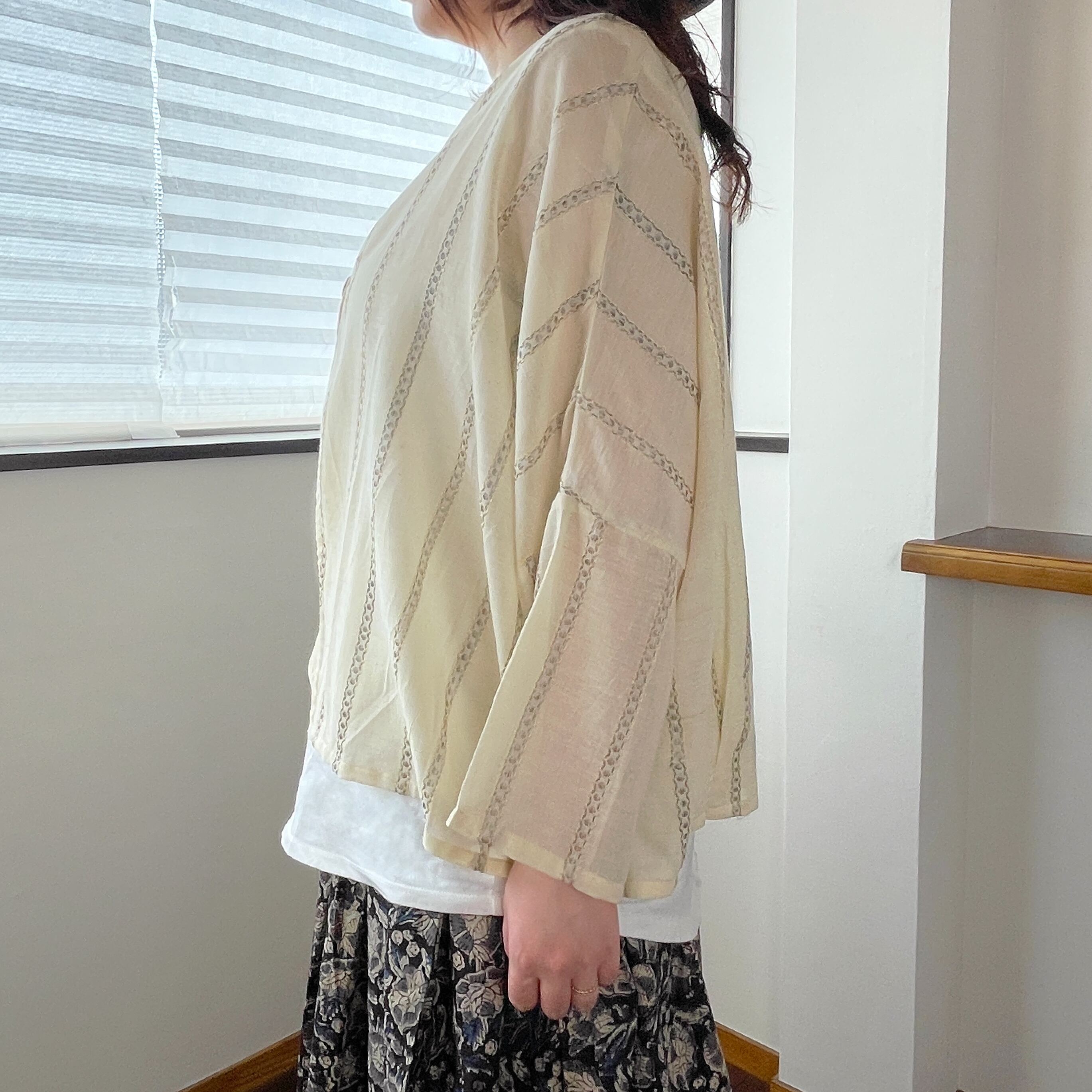 シンプルでありながらドルマンスリーブが特徴的なカーディガンです。
