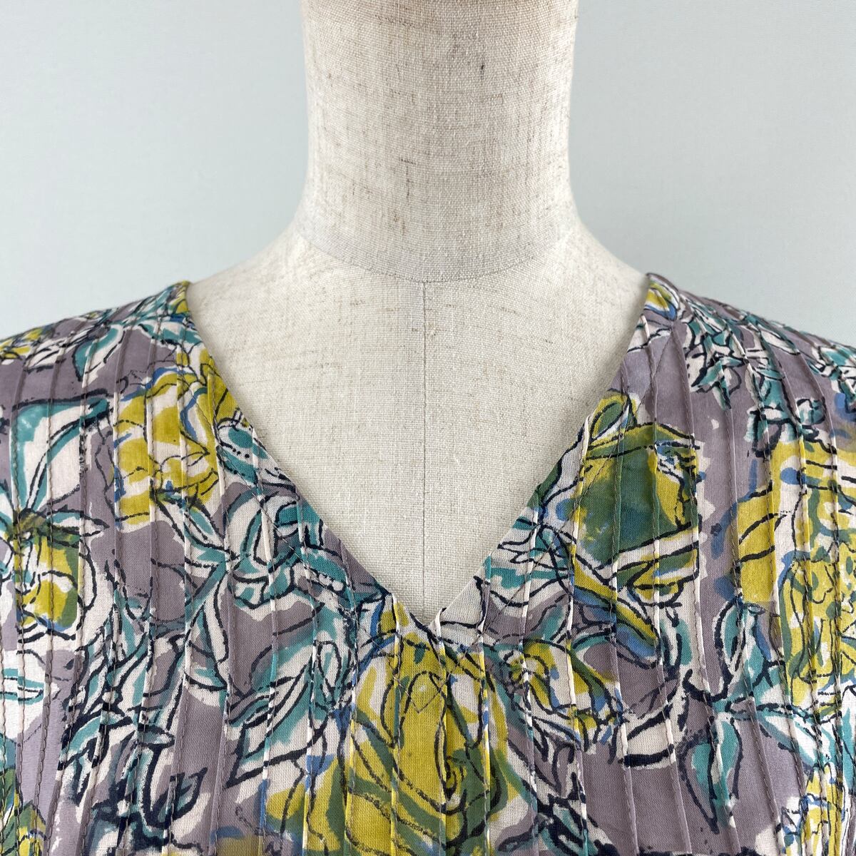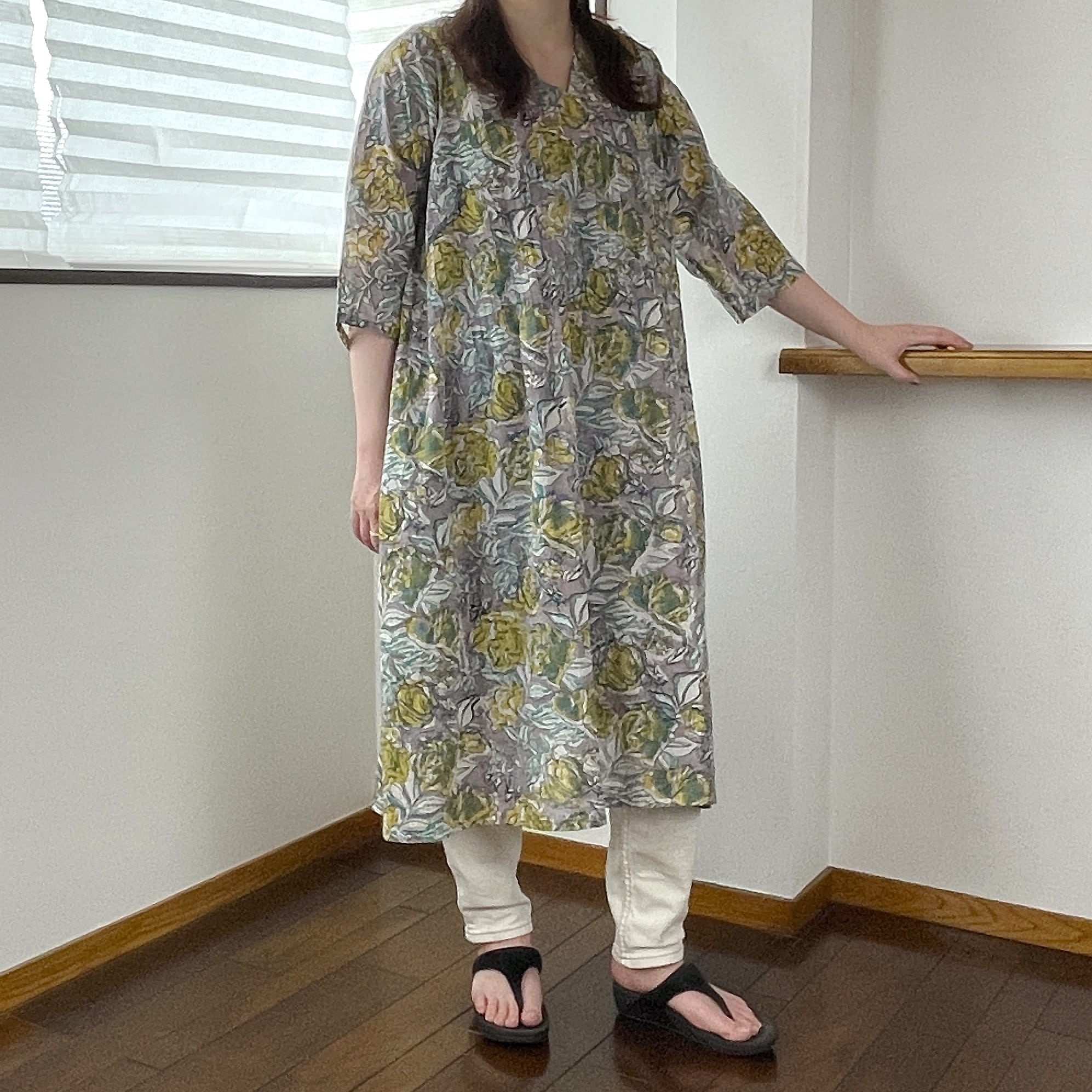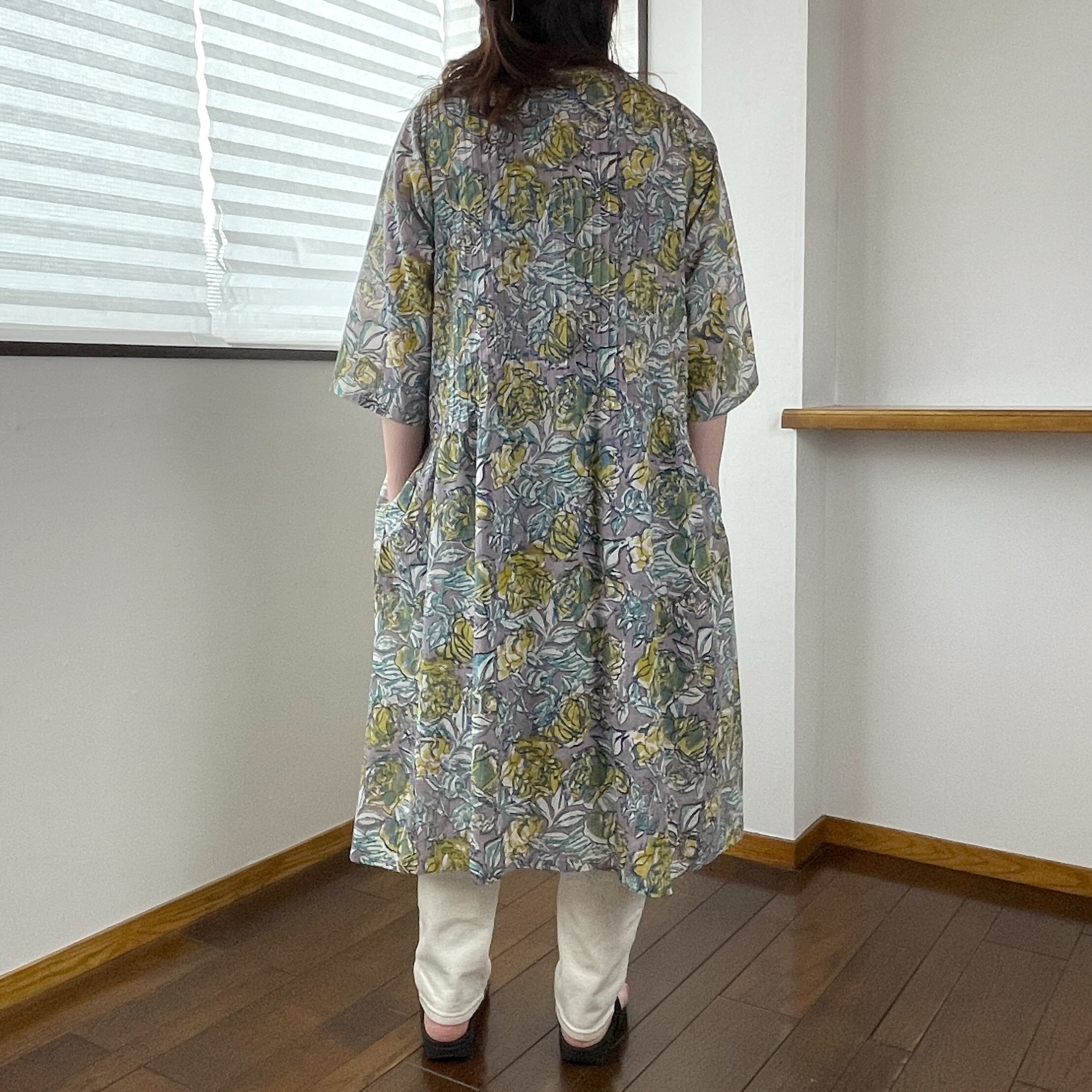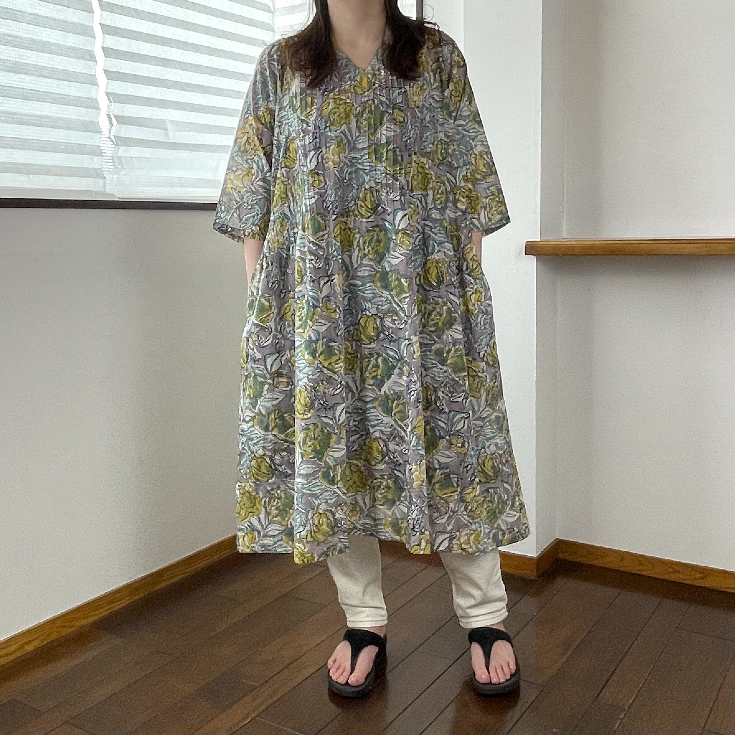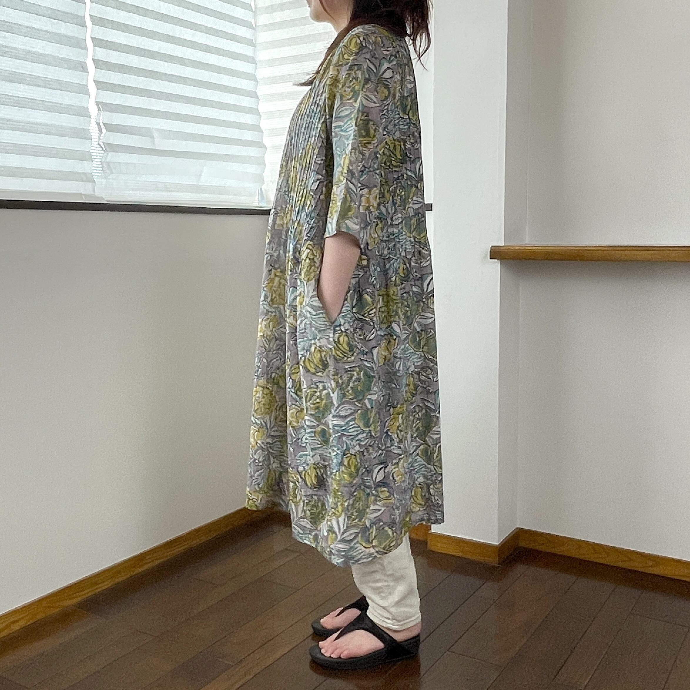 女性らしさを引き立てるピンタックをたくさん施したデザインが特徴のVネックワンピースです。