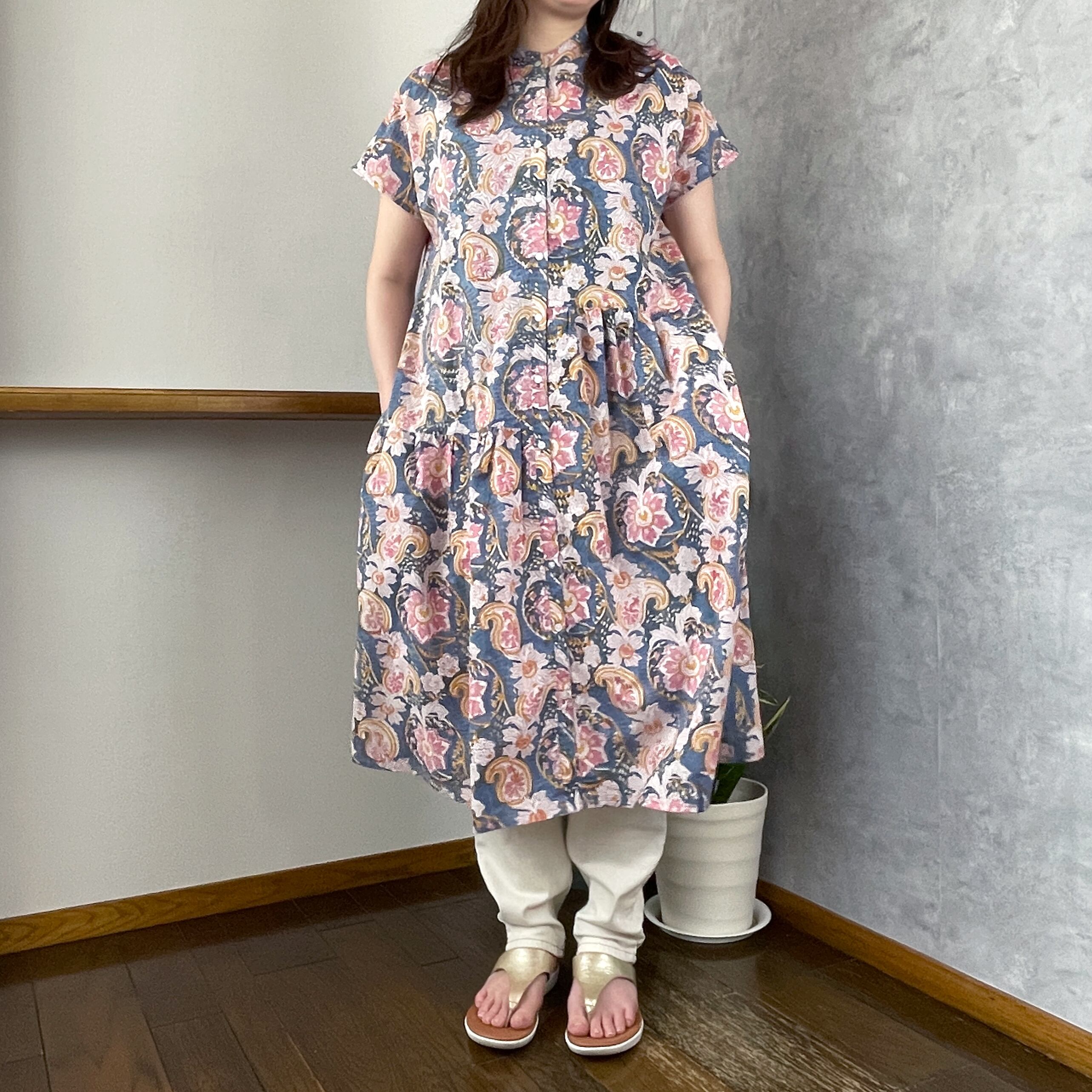 マオカラーフレンチスリーブワンピース<GIM/306・ブルー>